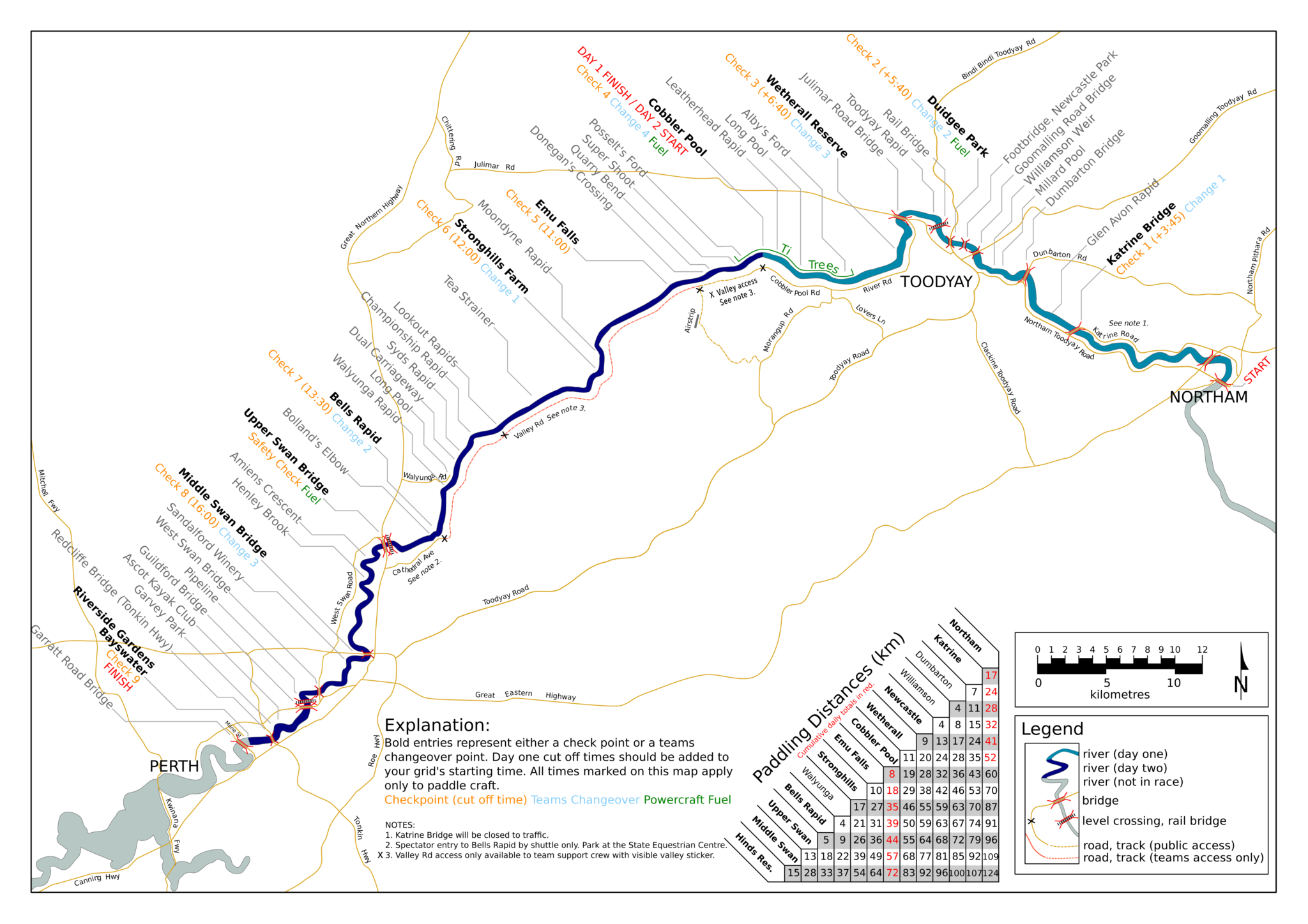 Practice day 2 is a practice run from Wetherall Reserve to Cobbler Pool, then from Northam to Julimar Road Bridge after lunch.